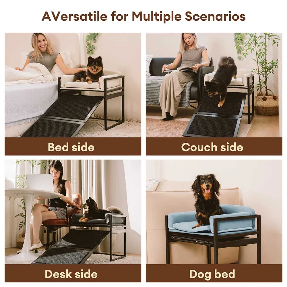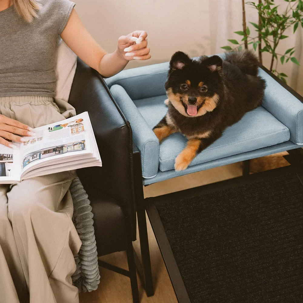 Elevated Pet Sofa Bed with Stairs Ramp for Bedside Lounge or Dog Window Perch