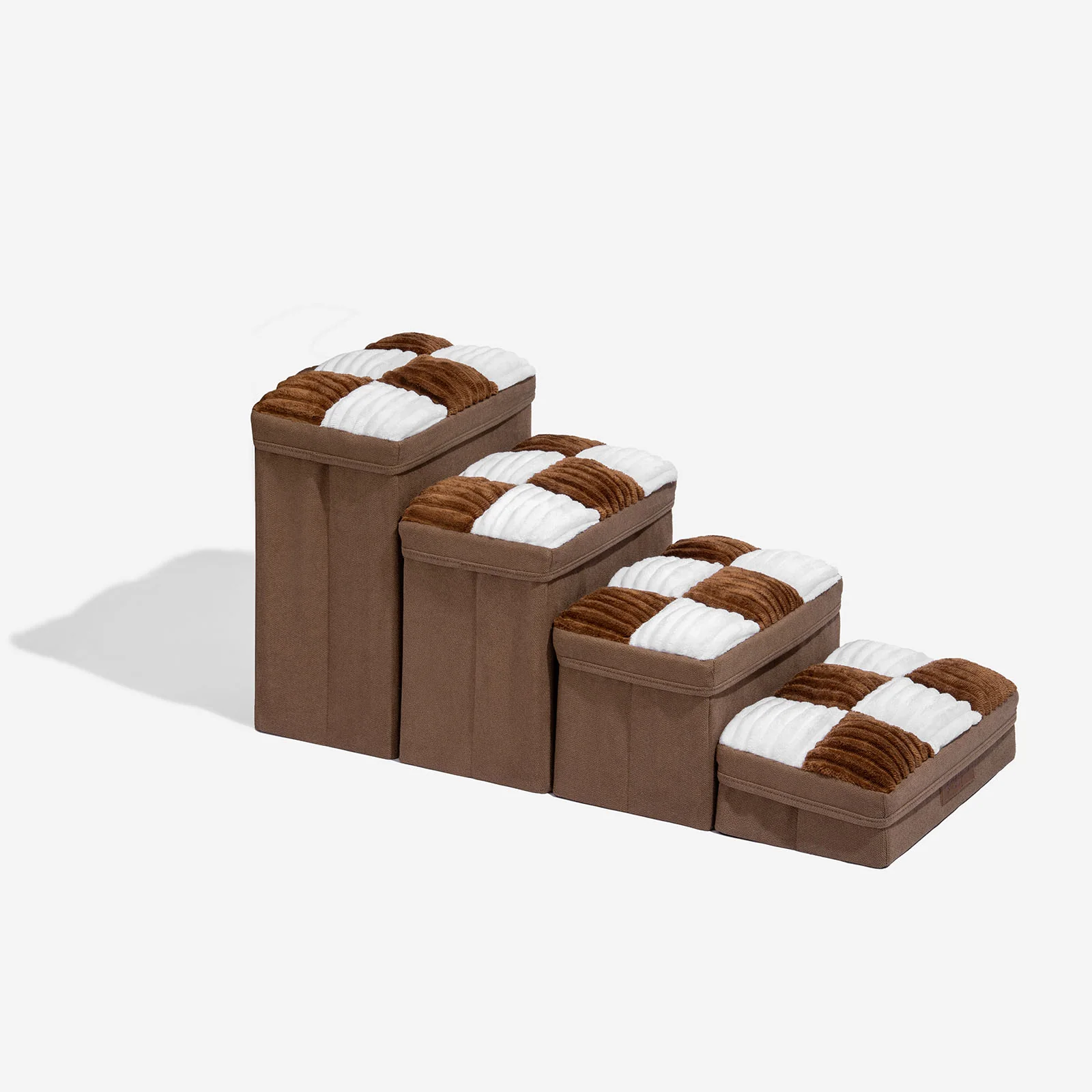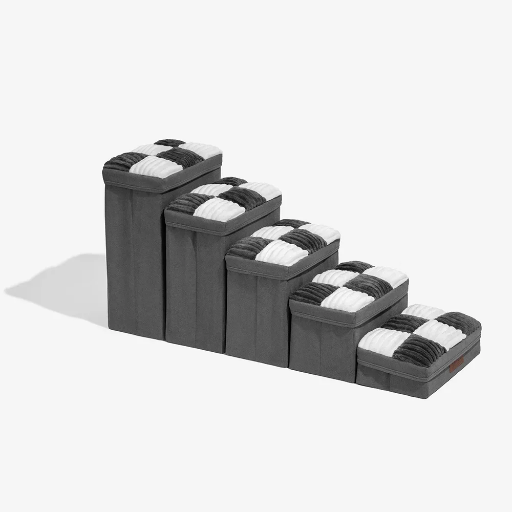 Detachable Chessboard Plaid Handcrafted Dog Stairs with Storage - Foldable Steps