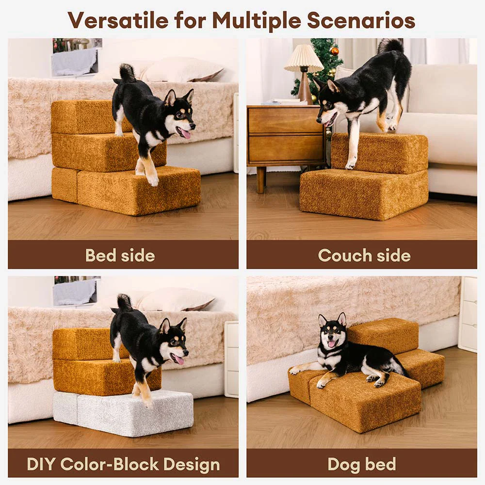 Adjustable Non-Slip Washable Soft Dog Stairs with Gentle Ramp