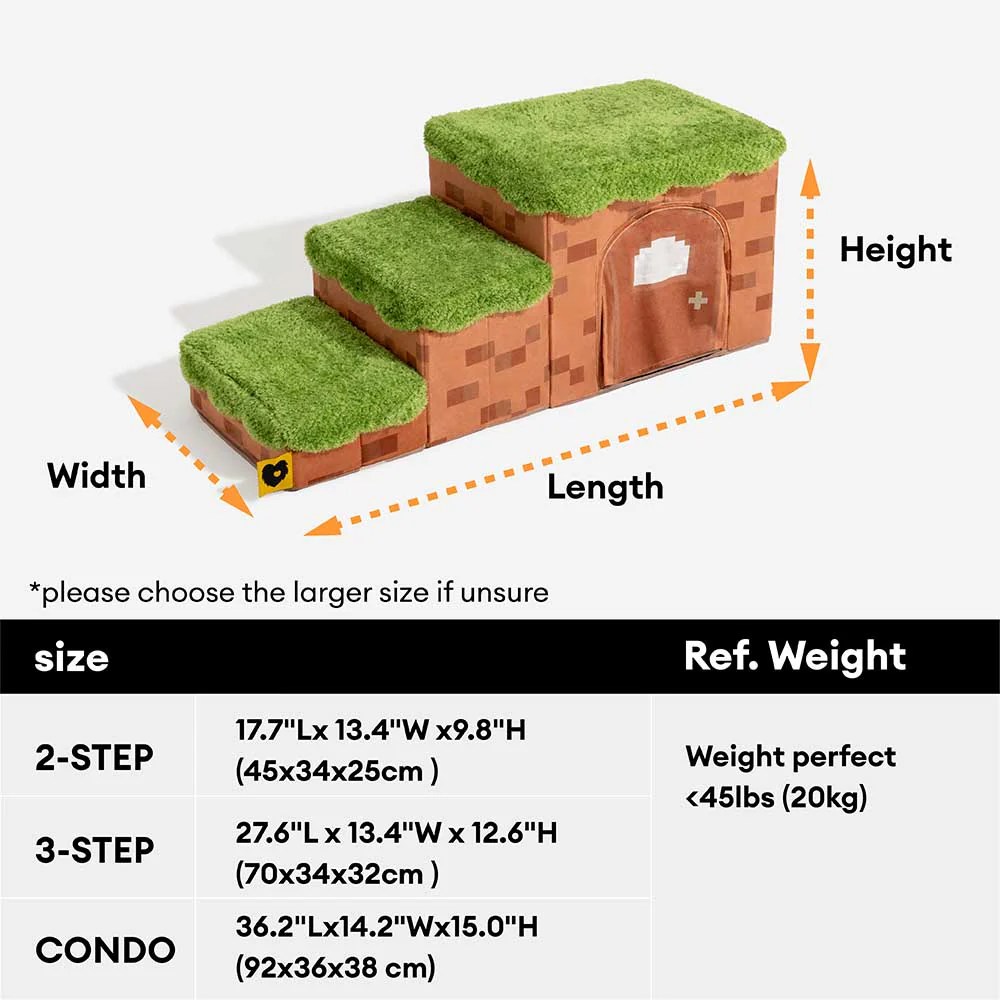 Retro Pixel Handcrafted Foldable Pet Stairs With Storage - Blocky PawGame