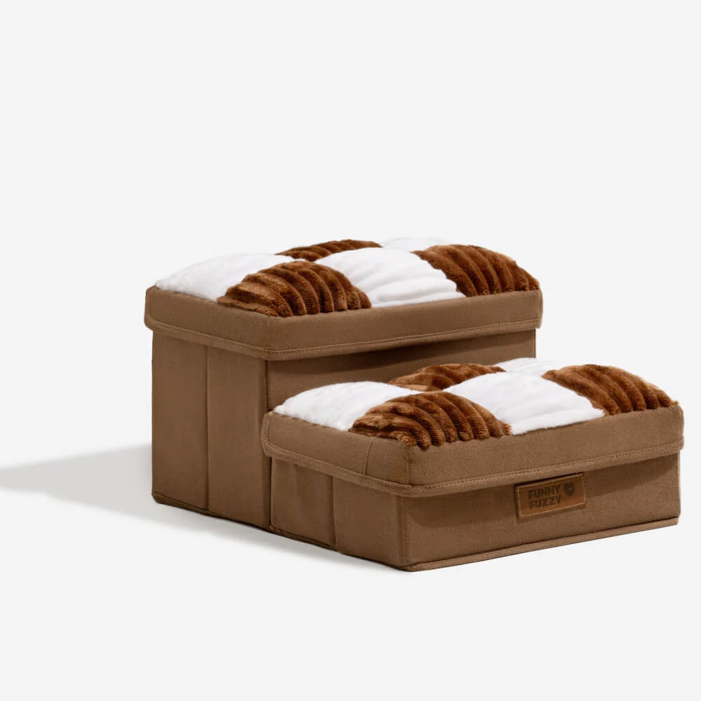 Chessboard Plaid Handcrafted Dog Stairs with Storage - Multifunctional and Foldable