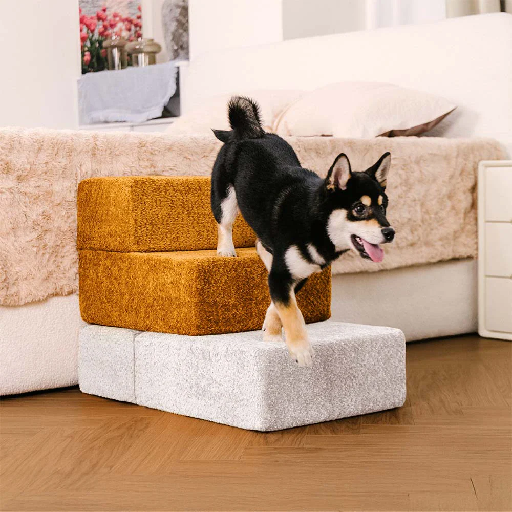 Chenille Durable Scratch-Resistant Foldable Blocks Multi-Level Dog Stairs