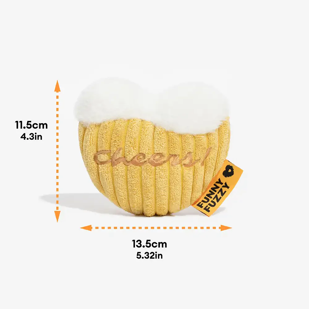 FUNNYFUZZY New Year's Eve Plush Squeaky Dog Toy - Cheers Beer