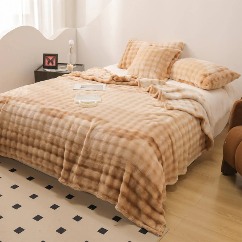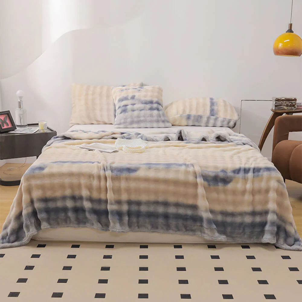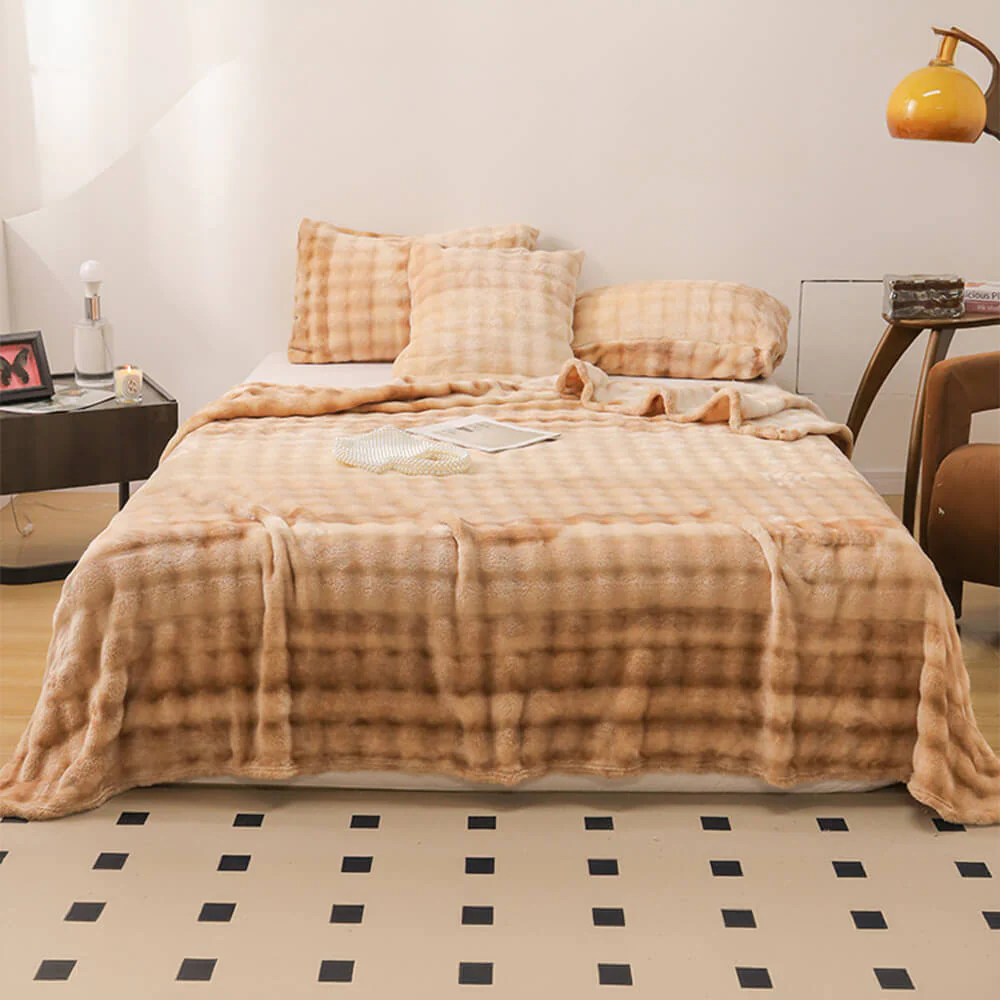 Luxury Gradient Faux Rabbit Fur Soft Blanket Flat Sheet