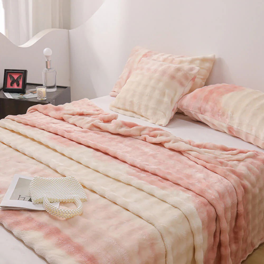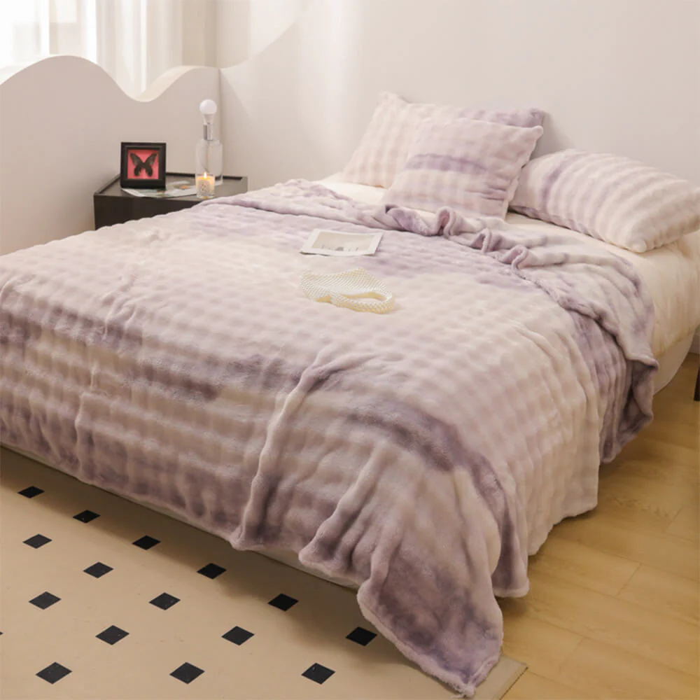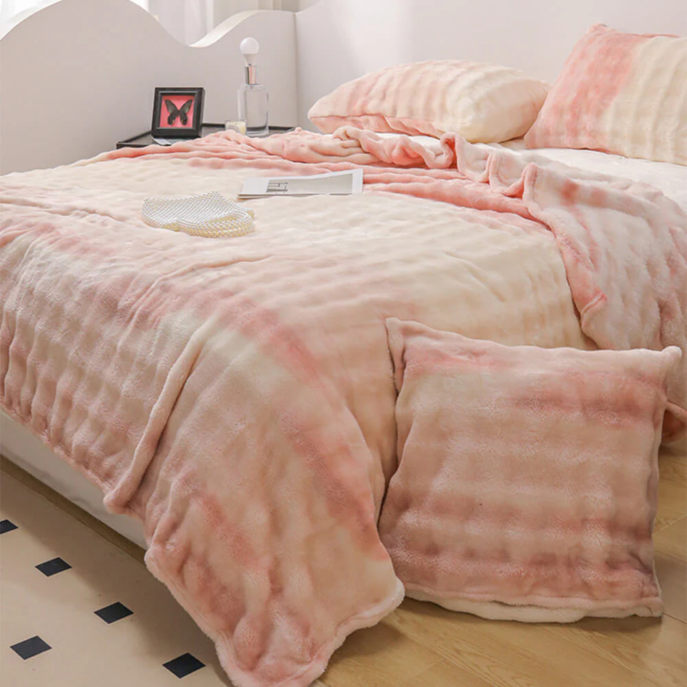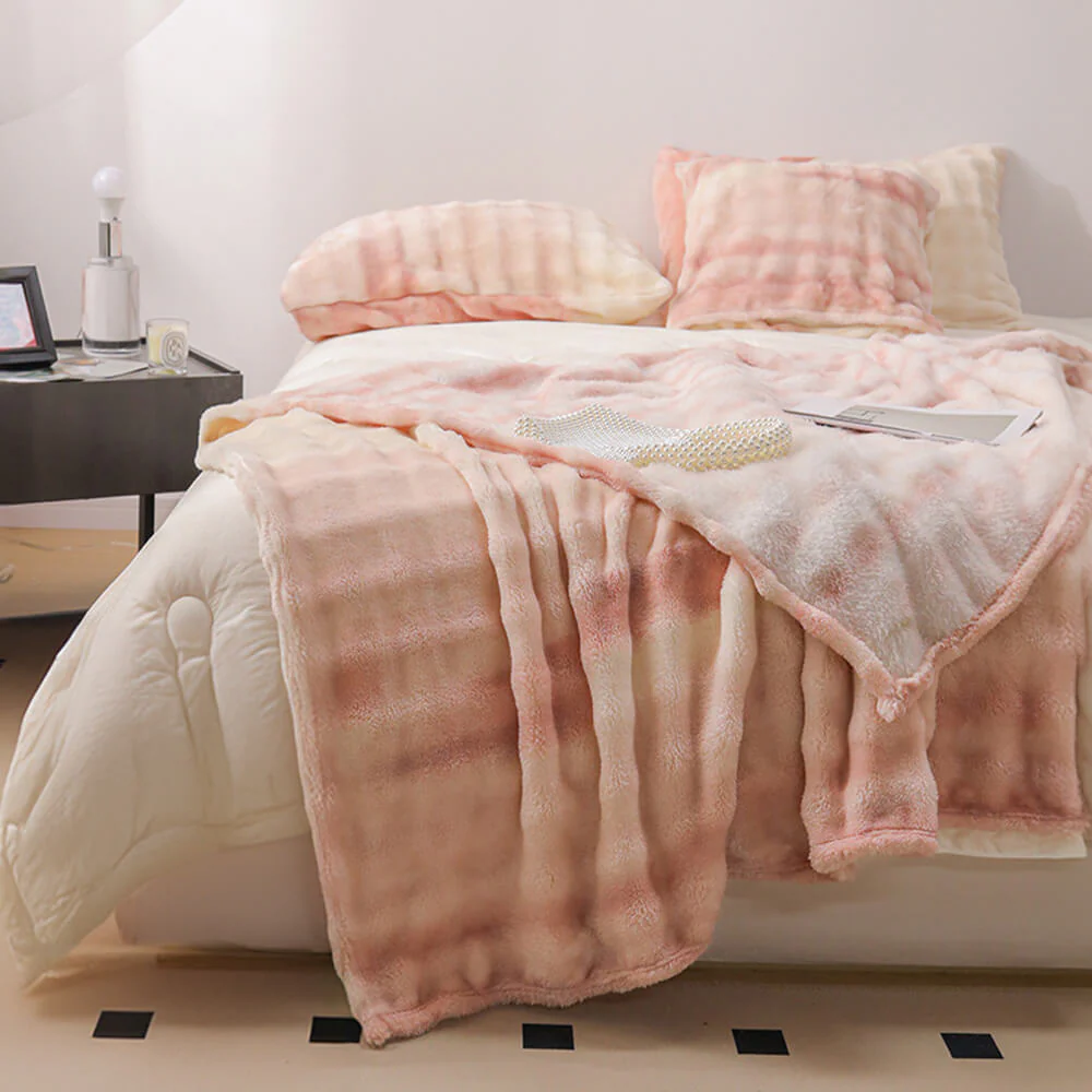 Luxury Gradient Faux Rabbit Fur Soft Blanket Flat Sheet