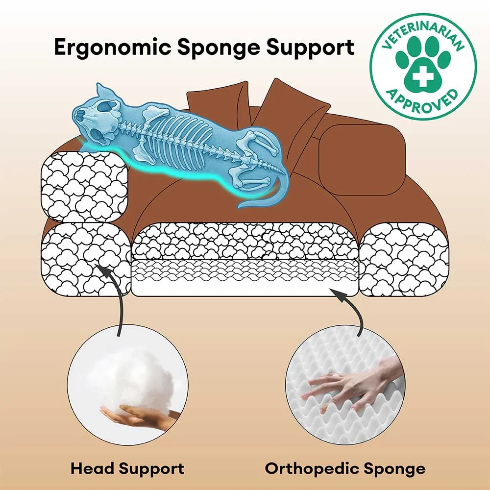 Luxury Waterproof Washable Supportive Bolster Dog & Cat Sofa Bed