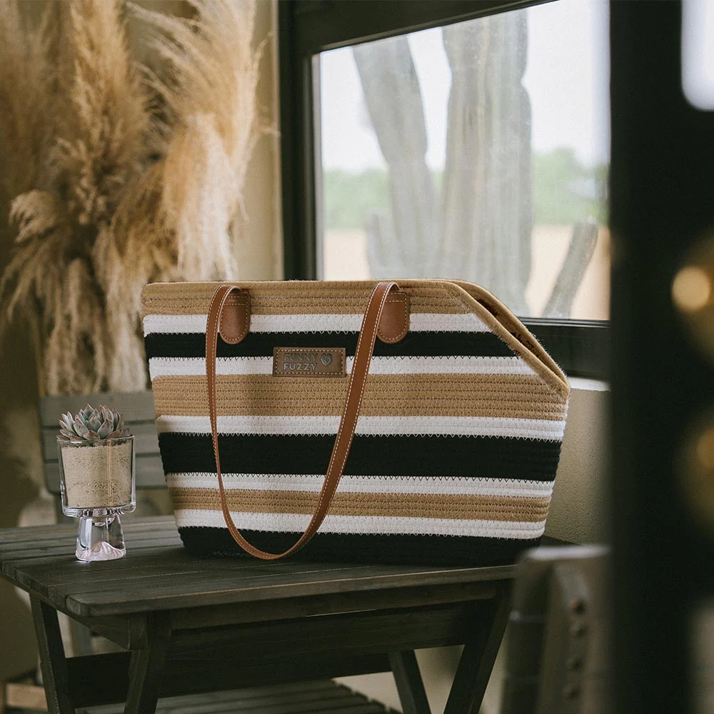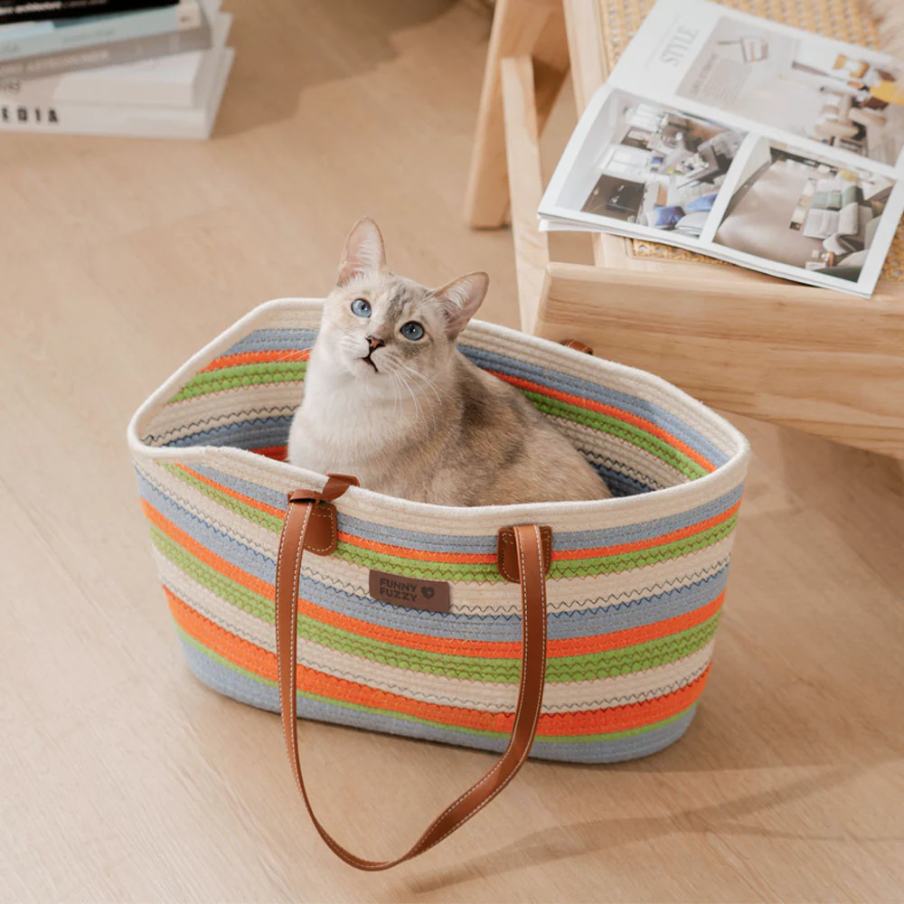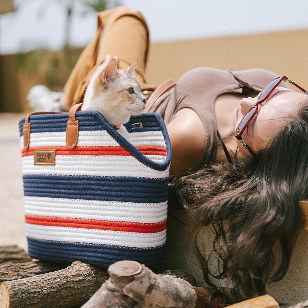 Handmade Lightweight Cotton Woven Beach Bag Pet Carrier- Summer Vacation