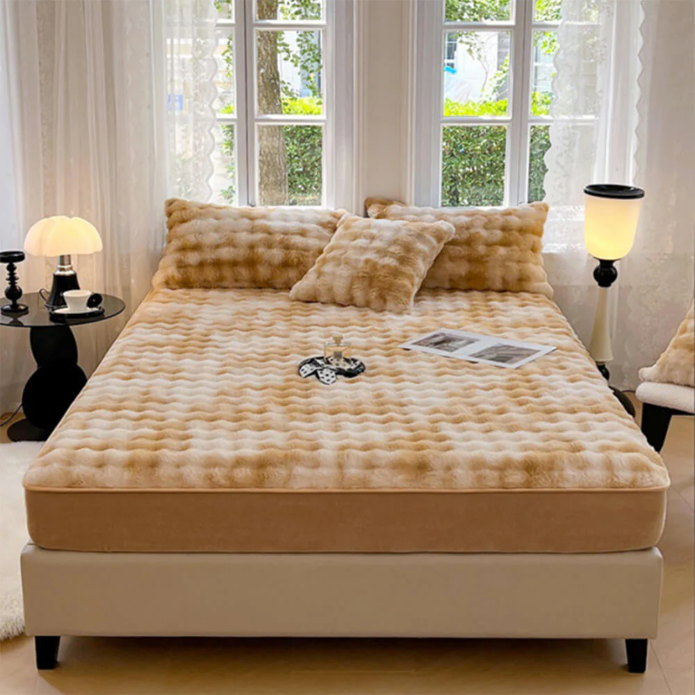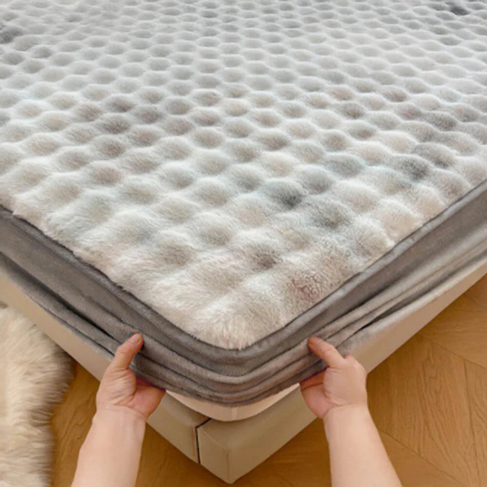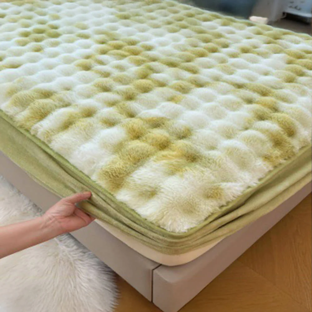 Gradient Cream Bubble Thickened Faux Rabbit Fur Warm Fitted Sheet Mattress Cover