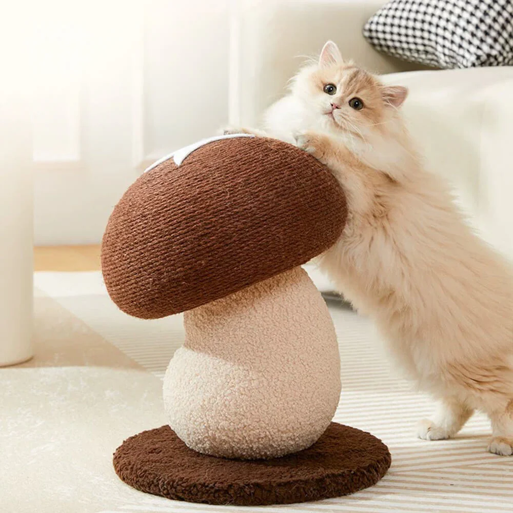 Handcrafted Mushroom-Shaped Natural Sisal Scratching Post for Large Cats