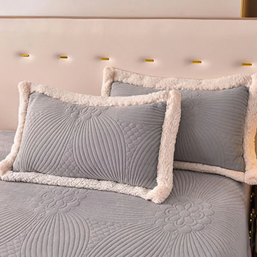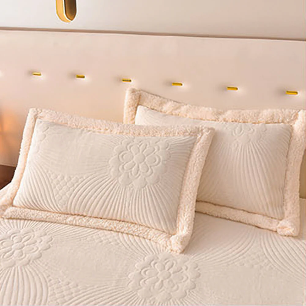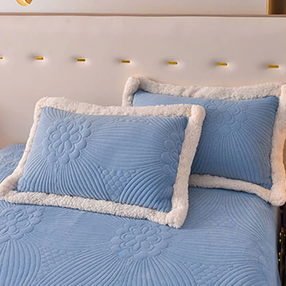 Floral Quilted Cozy Thickened Milk Fleece Bed Skirt Set