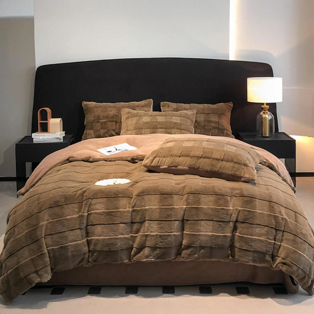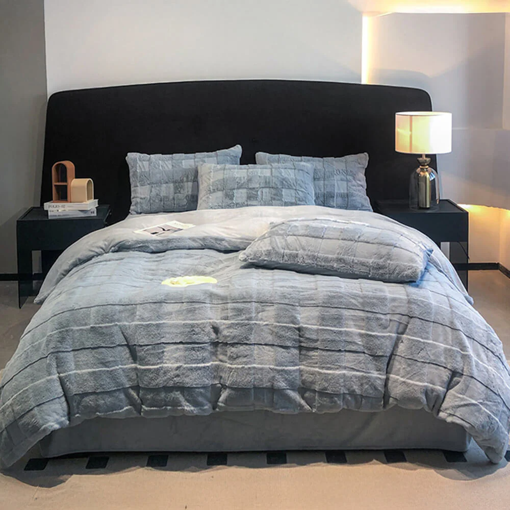 Elegant Faux Rabbit Fur Milk Velvet Double-Sided Cozy Bed Sheet Set